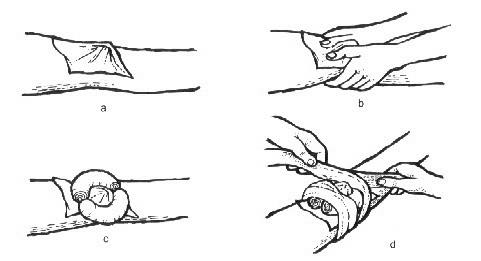 C: Make a "doughnut" arrangement of cloth as shown