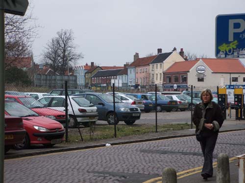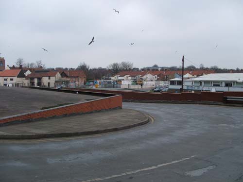 | From the back of Anglia Square looking toward St Augustines Street. The road was diverted at this point to run to the roundabout at the western end of the flyover, it runs behind the bill board which can be seen on the far side of the "car park" | A little further along |