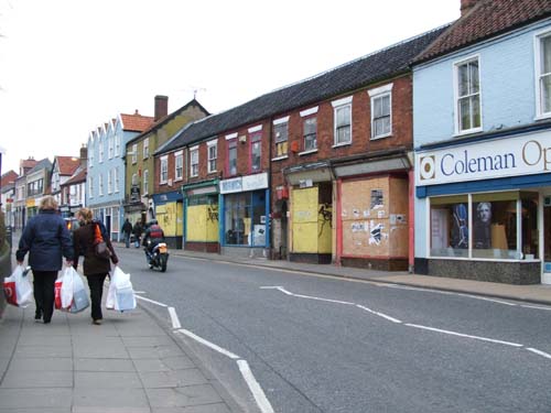 | The unfinished backside of Anglia Square showing the vast area of cleared land, which used to be a vibrant mix of houses and businesses with many mediaeval buildings | St Augustines Street , still suffering the urban blight caused by the ring road / Anglia Square scheme |
